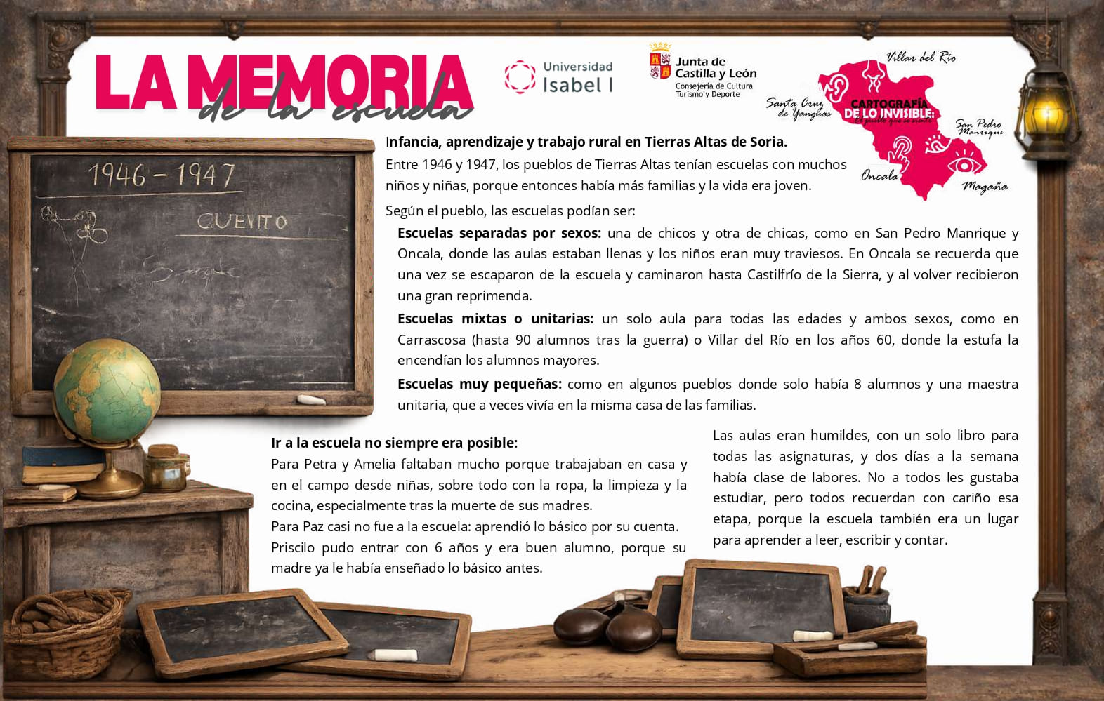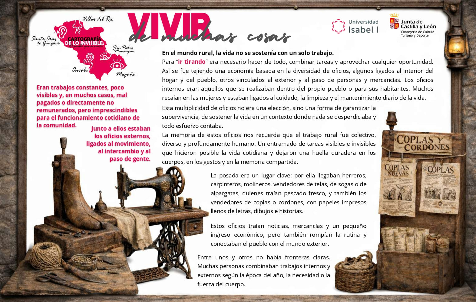 Las paredes de piedra áspera, la madera desgastada de las puertas, el hierro frío de las cerraduras o la tierra seca de los caminos cuentan historias a través del tacto.